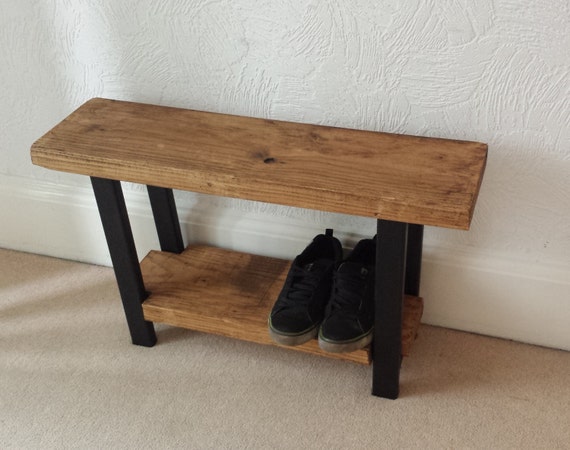 Industrial style rustic shoe rack bench seat great for hallway